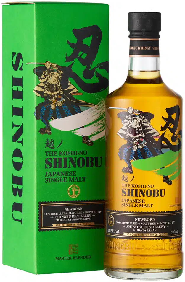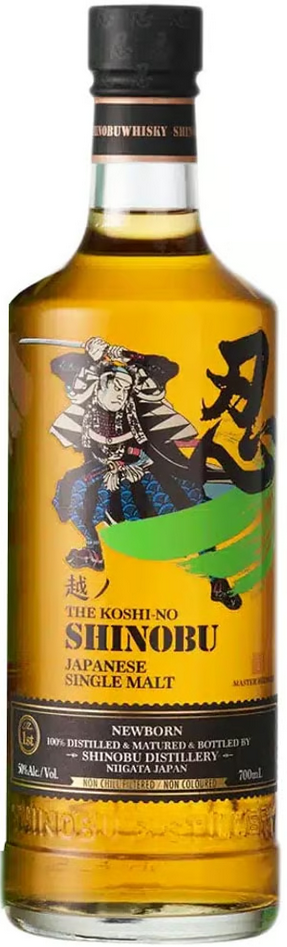 Shinobu, Single Malt Newborn — односолодовый японский виски, который родился на основе ремесленных навыков и страсти к пивоварению мастера-дистиллятора, Кена Усами, накопленных за 30 лет. Виски производится путем использования природных ресурсов Ниигаты, известных как "Три белых сокровища" — снега, риса и саке. Также используется редкий японский дуб Мицунара и солод. Виски выдерживается более года в бочках из-под бурбона первого наполнения и в бочках из японского дуба Мицунара. Смешивание виски проходит вручную.