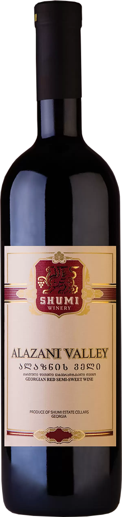 Shumi, Alazani Valley Red — красное полусладкое вино, изготовленное по старинным традициям из винограда сортов Саперави и Оджалеши. Саперави выращивается в Восточной Грузии, в Алазанской Долине (Кахетия), а Оджалеши — в Западной Грузии, в селе Мартвили (край Самегрело). Вино обладает приятным бархатистым вкусом и сочным ягодным ароматом.