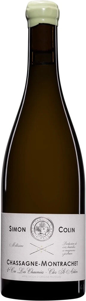 Simon Colin, Chassagne-Montrachet 1-er Cru, Les Chaumees Clos St-Abdon — впечатляющее, стильное, свежее, очень фруктовое белое вино из винограда сорта Шардоне, который выращивается на глинисто-известковых почвах клима "Кло Сэнт-Абдон" виноградника "Ле Шоме" класса Премье Крю. Сбор урожая проводится вручную в середине сентября, на винодельне ягоды подвергаются мягкому прессованию и ферментации в стальных резервуарах со строгим температурным контролем. Винтаж выдерживался в 350-литровых бочках из французского дуба в течение 15 месяцев.