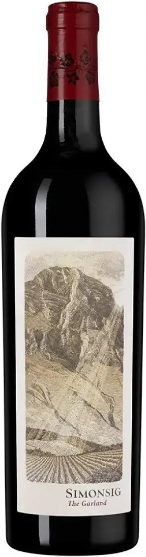 Simonsig, The Garland, Cabernet Sauvignon — роскошное флагманское вино хозяйства Симонсиг, созданное из отборного винограда сорта Каберне Совиньон. Ягоды произрастают на одном винограднике со сланцевыми почвами. Сбор урожая проводится исключительно вручную в момент оптимальной спелости ягод, плоды сортируют сразу на винограднике. На винодельне плоды подвергаются двухдневной предферментационной холодной мацерации с инокуляцией культивируемыми бордоскими дрожжами. Ферментация с регулярной перекачкой проводится в чанах из нержавеющей стали, температура не превышает 28°С. Мацерация на кожице длится 24 дня. Выдерживается вино в новых бочках из французского дуба на протяжении 19 месяцев. Потенциал вина составляет 15-20 лет.