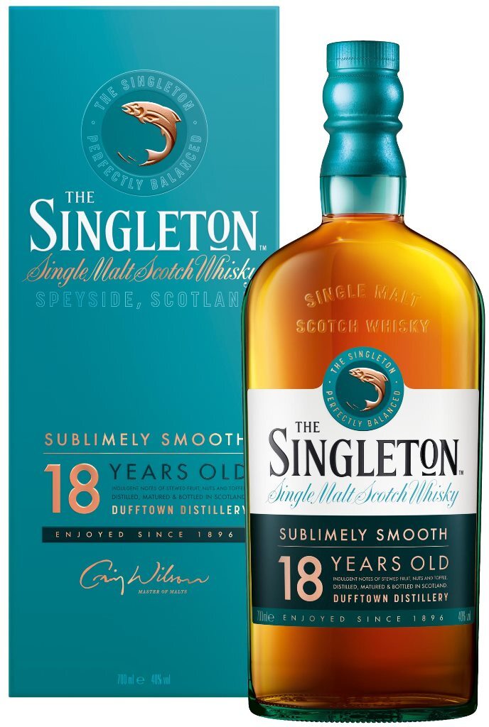 Singleton of Dufftown, 18 Years Old изготавливается из отборного солода очень высокого качества и чистой горной воды. Этот напиток прошел длительную ферментацию и медленную дистилляцию. Виски выдерживали в специальных дубовых бочках по особой технологии. Все это сделало вкус "Singleton" 18 Years Old отлично сбалансированным и весьма мягким. Для выдержки виски используют две разновидности бочек: бочки из американского дуба из-под бурбона и бочки из европейского дуба, в которых выдерживали херес. Виски "Синглтон" 18-летний можно употреблять в чистом виде, в качестве дижестива, немного разбавив водой или с хорошей крепкой сигарой.