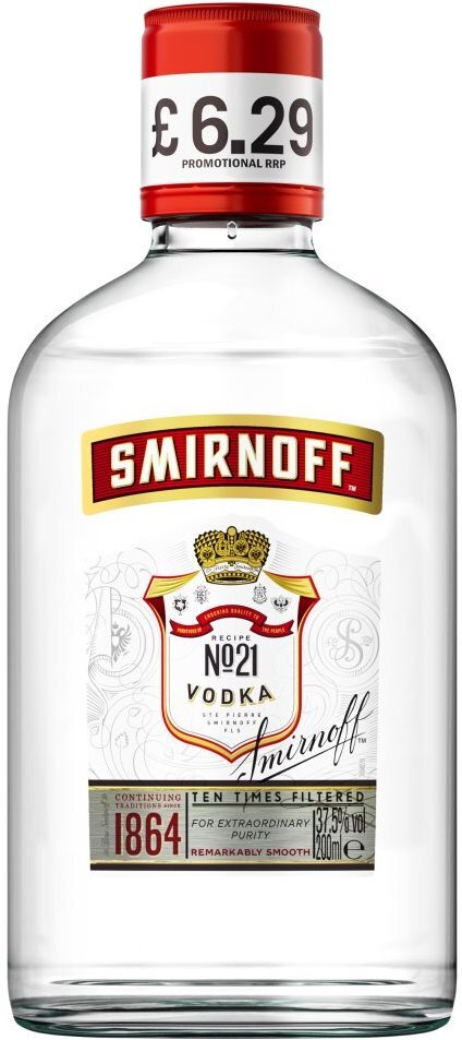Smirnoff No21, Red Label — классическая водка с неповторимым мягким, гладким вкусом, прошедшая тройную дистилляцию. Для того, чтобы напиток имел более четкий вкус, его фильтруют около десяти раз. Водка "Смирнофф" прекрасно подходит для приготовления коктейлей, а также употребления в паре с разнообразными блюдами и закусками.