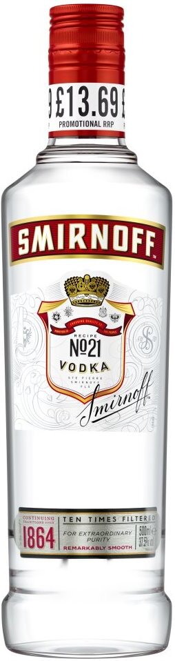 Smirnoff No21, Red Label — классическая водка с неповторимым мягким, гладким вкусом, прошедшая тройную дистилляцию. Для того, чтобы напиток имел более четкий вкус, его фильтруют около десяти раз. Водка "Смирнофф" прекрасно подходит для приготовления коктейлей, а также употребления в паре с разнообразными блюдами и закусками.