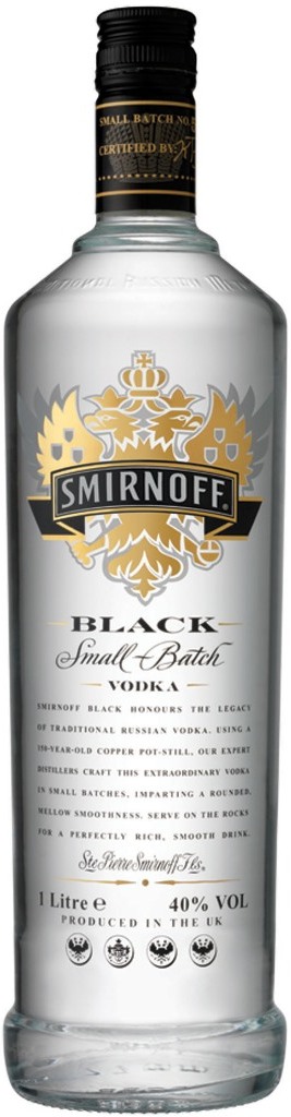 Smirnoff, Black — водка премиум класса от компании Diageo. При изготовлении водки используют дистиллят из пшеницы, производимый в Шотландии, а также процедуру фильтрации через уголь из сибирской серебристой березы. "Смирнофф" Блэк характеризуется сильным вкусом с пряными тонами лакрицы, аниса и перца. Специалисты рекомендуют употреблять напиток в составе коктейлей.