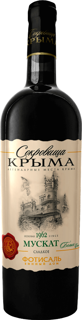 Сокровища Крыма, Мускат Белых Скал — белое сладкое вино с характерными цветочно-медовыми оттенками во вкусе и аромате. Вино изготовлено из винограда мускатных сортов (Мускат Янтарный, Мускат Оттонель, Мускат белый), выращенного в Крыму. Мускат рекомендуется подавать слегка охлажденным в сочетании с легкими закусками и фруктами.