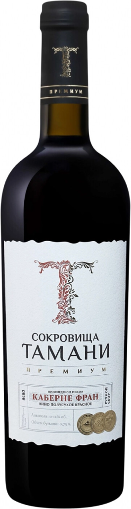Сокровища Тамани, Премиум Каберне Фран — красное полусухое вино, для изготовления которого используют виноград сорта Каберне Фран и концентрированное виноградное сусло. Каберне Фран особенно популярен благодаря изысканности ароматов. Благодаря ярким органолептическим характеристикам и неприхотливости сорт завоевал широкое признание у российских виноделов. Урожай собирается исключительно вручную. Процесс винификации протекает по традиционному методу производства красных вин с принудительной остановкой брожения, когда содержание остаточного сахара достигает 5-15 г/л. Вино отлично сочетается с твердыми сырами, блюдами из мяса и дичи, мясными закусками.