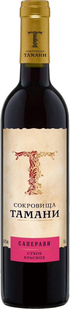 Сокровища Тамани, Саперави — гармоничное красное сухое вино с демократичным соотношением "цена-качество", для изготовления которого используют виноград сорта Саперави и концентрированное виноградное сусло. Вина из Саперави отличаются глубоким цветом, а также приятным, терпковатым вкусом. По мнению некоторых экспертов, сорт Саперави по своей органолептике очень схож с виноградом, который использовали для виноделия много веков назад, поэтому он и завоевал широкое признание у российских виноделов. Процесс винификации протекает по традиционному методу производства красных вин. Вино станет прекрасным дополнением к мясу на гриле, жареному мясу, щедро приправленному специями, а также зрелым сырам.