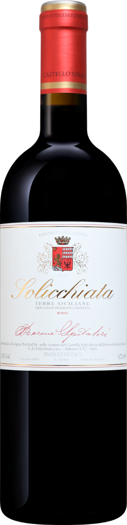 Solicchiata — восхитительное красное вино, изготовленное из выращенных на Сицилии международных сортов винограда: Каберне Совиньон, Каберне Фран и Мерло. Лозы культивируются на юго-западном склоне вулкана Этна на высоте 800 метров над уровнем моря. Террасные виноградники с молодыми лозами разбиты на вулканической почве, образовавшейся в результате застывших потоков лавы на Этне. Урожай собирается вручную. Винификация проходит в дубовых чанах усеченной конической формы. Затем вино два года выдерживается в барриках из французского дуба (Алье и Тронсе) и три года в бутылках.