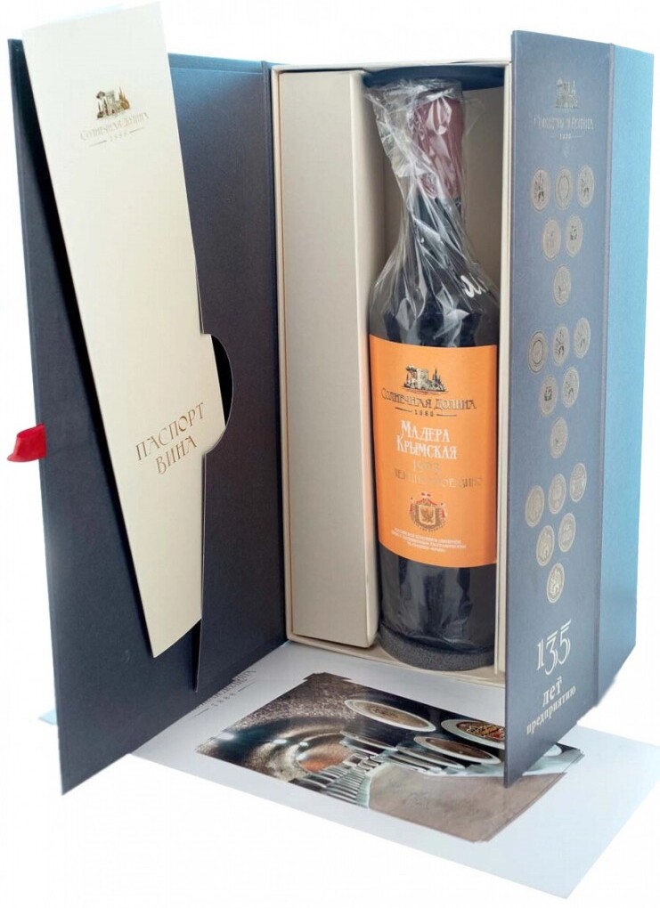 Солнечная Долина, "Мадера Крымская", 1993 — ликерное вино из коллекционной серии Солнечной Долины. В его производстве использовали тщательно подобранный купаж крымских сортов винограда 1993 года урожая. Виноград был выращен и собран на солнечных плантациях Крыма, принадлежащих хозяйству Солнечная Долина. Вино было создано по классической для ликерных вин технологии методом неполного сбраживания предварительно настоянной мезги. Доведение до необходимых характеристик крепости и сладости осуществлялось путем добавления спирта высшей очистки. Далее вино созревало по методу кантейро в неполных дубовых бочках на солнце не менее 4-х лет, после чего бочки были перенесены в прохладные подвалы винодельни, где и завершилась бочковая выдержка. Дальнейшее созревание в бутылках придало коллекционному вину дополнительную индивидуальность и подчеркнуло соблазнительную бархатистость. Попробуйте само время на вкус с винтажом 1993 года! Вино выпускается в презентабельной подарочной коробке, внутри которой можно найти также паспорт вина.