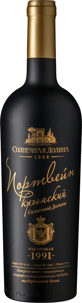 "Портвейн Крымский Солнечной Долины", 1991 — редкий образец марочного портвейна, одно из немногих присутствующих на рынке старых крымских вин. Он создан из отборного винограда сортов Кокур белый, Ркацители и купажа других европейских сортов, выращенных на лозах возрастом 30-35 лет и собранных осенью 1991 года. Напиток в полной мере раскрывает многолетние винодельческие традиции. Выдержка портвейна осуществляется в дубовых бочках в течение трех лет. Вино можно пить уже сейчас, но также оно способно развиваться на протяжении 20 лет.