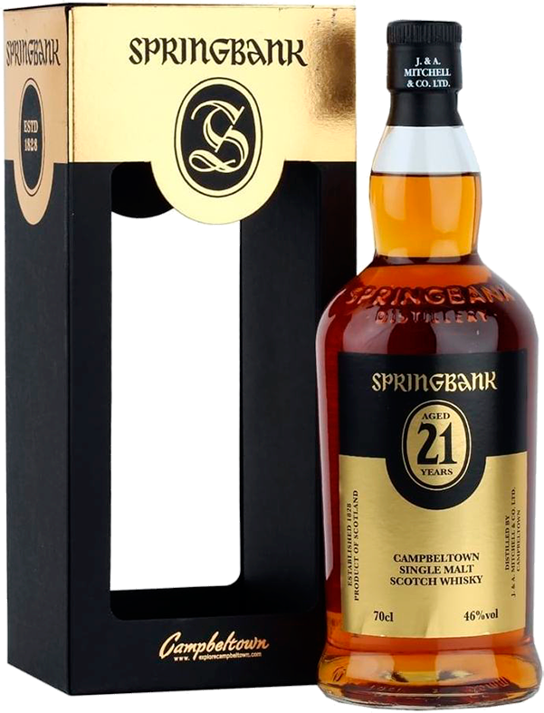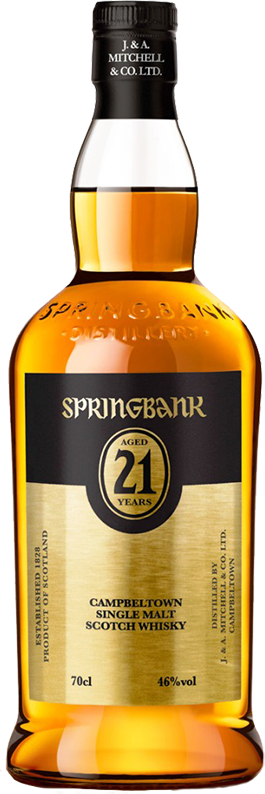 Springbank, 21 Years Old — серьезный, захватывающий, знаковый односолодовый виски невероятной сложности, который стал легендой среди любителей и знатоков виски, которые говорят, что этот виски стоит потратить время и деньги! Восхитительный вкус виски является отличным примером того, как "Springbank" развивается с возрастом. Для производства виски используется слегка окуренный ячмень и применяется уникальный процесс дистилляции в 2.5 раза, для чего используется дополнительный второй спиртовой куб. В результате виски получает сильный характер и полный вкус. После выдержки в бочках из-под хереса первого и повторного налива, виски был разлит по бутылкам без холодной фильтрации в январе 2014 года.