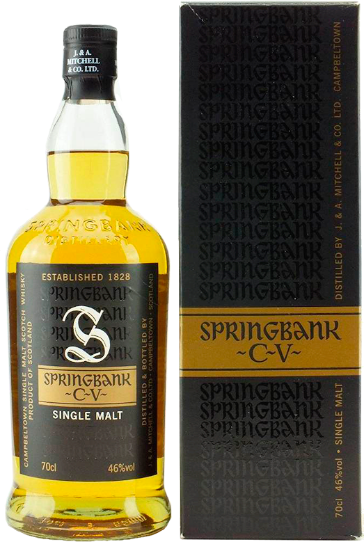 Springbank, CV — виски, который производится с использованием необычной дистилляции в 2,5 раза: первая и вторая перегонка — стандартные, без разделения на фракции, а в третьей происходит разделение: голову и хвосты возвращают во второй куб (т.е. части, выходящие в начале и в конце перегонки), а отбирают только среднюю часть. Для "Спрингбэнк" СВ используется купаж из различных типов спиртов: выдержанные в течение 7 лет в бочках из-под бурбона, выдержанные в течение 10 лет в бочках из-под хереса и выдержанные в течение 14 лет в бочках из-под портвейна.