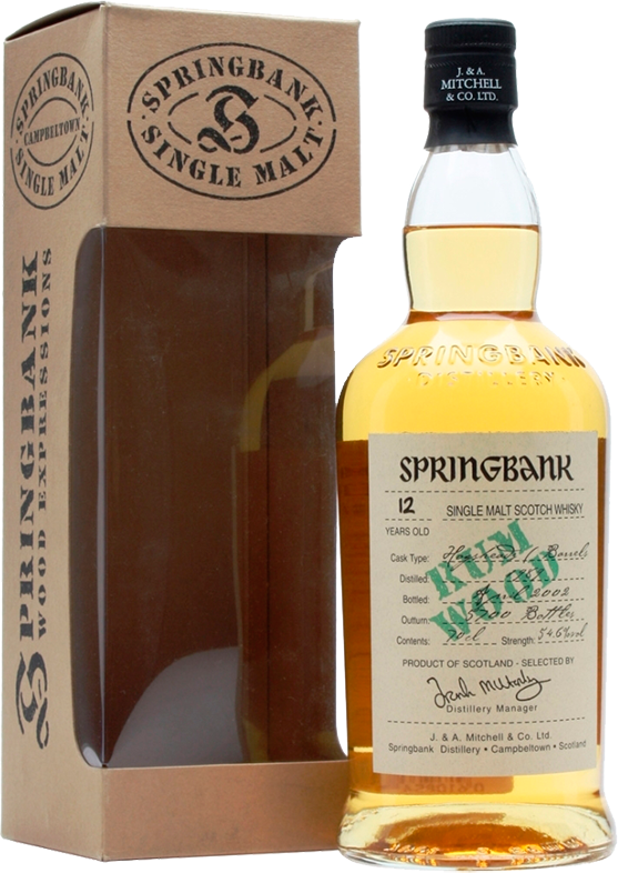 Известный среди любителей виски во всем мире, виски Спрингбанк производится с использованием уникальной дистилляции в два с половиной раза, что придает виски индивидуальный характер. Особенностью "Springbank Rum Wood" является то, что сначала виски выдерживается 8 лет в бочках из под бурбона, а затем еще 8 лет в свежих бочках из-под рома. Сладкие, пряные, экзотические фруктовые оттенки рома ненавязчиво вплетаются в основной вкус Спрингбанк и хорошо ощущаются в послевкусии.