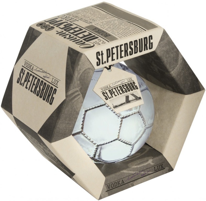 Санкт-Петербург, Футбол Люкс Мяч — лимитированный выпуск водки премиум-класса, который. несомненно, станет отличным подарком для поклонников "сине-бело-голубых". Бутылка выполнена в виде футбольного мяча и упакована в коробку оригинального дизайна. В изготовлении этого крепкого напитка используется очищенная питьевая вода и высококачественный спирт "Люкс".