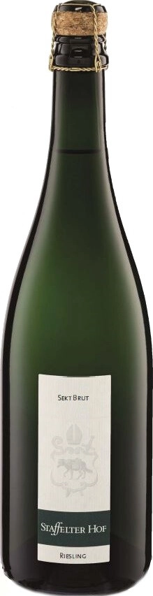 Staffelter Hof, Riesling Sekt Brut — изысканный и освежающий брют, пожалуй, из лучшего региона мира по производству Рислинга, долины Мозеля в Германии. Виноградники располагаются в Крёве, деревушке в среднем течении Мозеля в юго-западной части Германии. Лозы высажены преимущественно на почвах из сине-серых сланцев. Виноградники сертифицированы как органические. Собранный виноград проходит винификацию с минимальным вмешательством со стороны винодела, использованием диких дрожжей и без добавок. Игристое вино изготавливается традиционным методом, оно выдерживается в бутылке на осадке 20-24 месяцев перед дегоржажем. Рислинг Зект Брют — игристое вино, придающее любому торжеству благородный оттенок, оно составит достойную конкуренцию шампанским винам Франции.