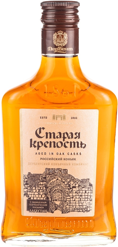 Ординарный коньяк "Старая крепость" производится на Дербентском коньячном комбинате с 1997 года. Коньяк изготовлен по классической технологии из коньячных спиртов, прошедших в среднем 4 года выдержки, к которым добавляются до 25% коньячных дистиллятов, выдержанных не менее 5-10 лет.