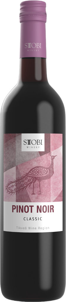 Stobi, "Classic" Pinot Noir — сложное, среднетелое красное сухое вино с шелковистыми танинами из классической линейки вин Стоби. Для изготовления этого вина используют виноград сорта Пино Нуар, выращиваемый на собственных виноградниках компании. После сбора урожая, который осуществляется в момент оптимальной спелости ягод, виноград подвергается традиционной винификации при контролируемой температуре. Лучше всего вино подавать при температуре 14-16°C к крольчатине, рыбе, сырам, грибам.