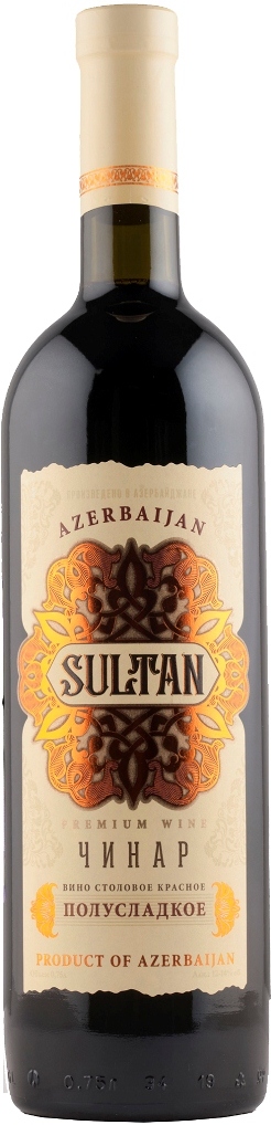 Sultan, Chinar — насыщенное полусладкое вино из выращенного в предгорьях Большого Кавказа винограда разновидностей Каберне Совиньон и Мадраса. Виноградники располагаются на высоте 800 м. в районе Шемахи. Напиток покоряет интенсивным букетом с выраженными тонами чернослива и сбалансированным, бархатным вкусом. Вино "Султан" Чинар украсит собой застолье с блюдами из мяса и птицы, его также можно сервировать с сырной нарезкой-ассорти.