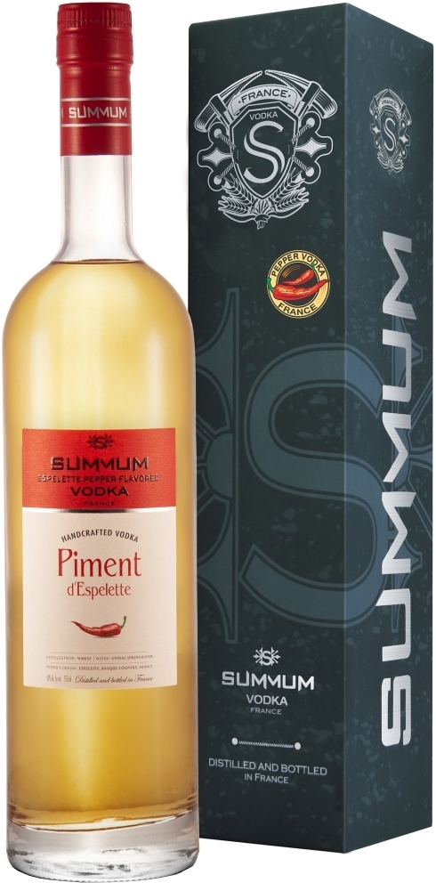 Summum, Espelette Pepper Flavored — высококачественна водка, в составе которой чистейшая вода из источников Gensac-la-Pallue, отборная пшеница из региона Beauce и перец чили из деревни Эспелетт. Именно перец из этой деревни считается лучшим и является эмблемой Страны Басков. Благодаря пятикратной дистилляции, многоступенчатой фильтрации и современной холодной стабилизации, водка приобретает наивысшую чистоту не более 2gr/hl. Дистилляция проводится исключительно вручную.