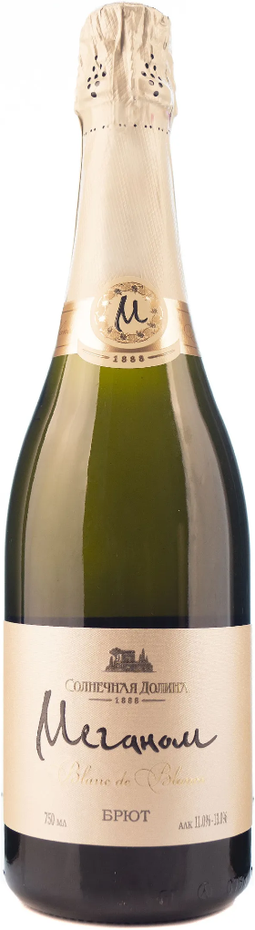Meganom, Blanc de Blancs Brut — элегантная новинка от Солнечной Долины, изысканное игристое вино, изготовленное из винограда сортов Кокур, Алиготе, Шардоне и Ркацители. Оно производится классическим шампанским методом, предполагающим проведение вторичной ферментации и выдержки в бутылках. Созревание на осадке длится не менее 9 месяцев, но фактически, игристое вино выдерживается около 12 месяцев! Длительная выдержка наделяет игристое вино сложным, богатым и элегантным букетом. Игристое вино идеально в качестве аперитива, оно отлично сочетается с легкими закусками, рыбой, морепродуктами и моллюсками.