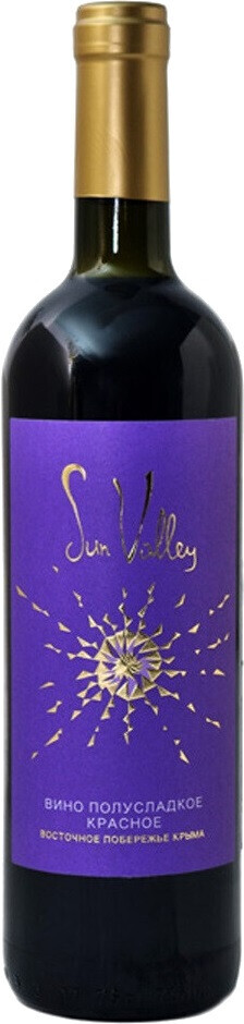 Sun Valley, Red Semi-Sweet — красное полусладкое вино из самой "солнечной" линейки вин компании Солнечная Долина. В купаж вина входит виноград сортов Бастардо Магарачский, Каберне Совиньон, Мерло, Одесский Черный и другие красные европейские сорта, выращиваемые на восточном побережье Крыма. Это питкое вино с душистым фруктово-ягодным ароматом и гармоничным, немного терпким вкусом способно дополнить широкий спектр несложных блюд повседневной трапезы, а также подойдет для пикника на природе. Рекомендуется подавать охлажденным.