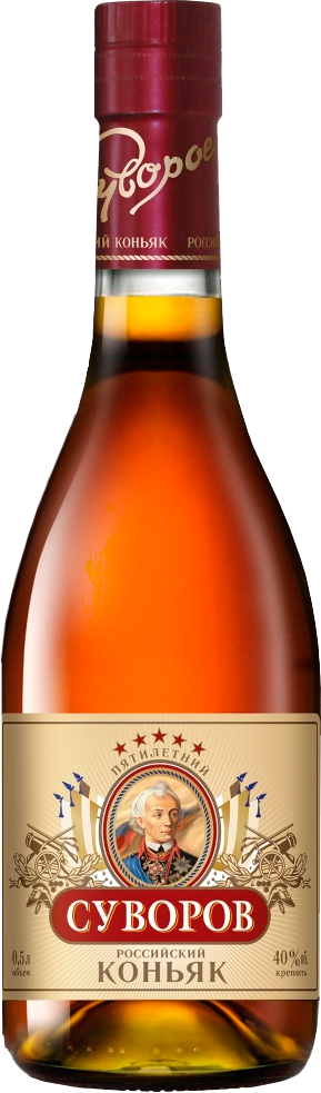 Коньяк "Suvorov" производится из виноградных спиртов, полученных из белых сортов винограда, выращенных в России. Коньяк получил свое имя в честь прославленного русского полководца, Суворова Александра Васильевича. Спирты, входящие в купаж, выдерживались в дубовых бочках не менее 5 лет. Напиток обладает янтарно-золотистым цветом, глубоким ароматом с нотами полевых цветов, сухофруктов и ванили, и полным, гармоничным вкусом со слегка маслянистой текстурой. Коньяк "Суворов" рекомендуется употреблять в качестве дижестива, в сочетании с кофе, черным чаем, сигарой, льдом, мороженым и в составе коктейлей.
