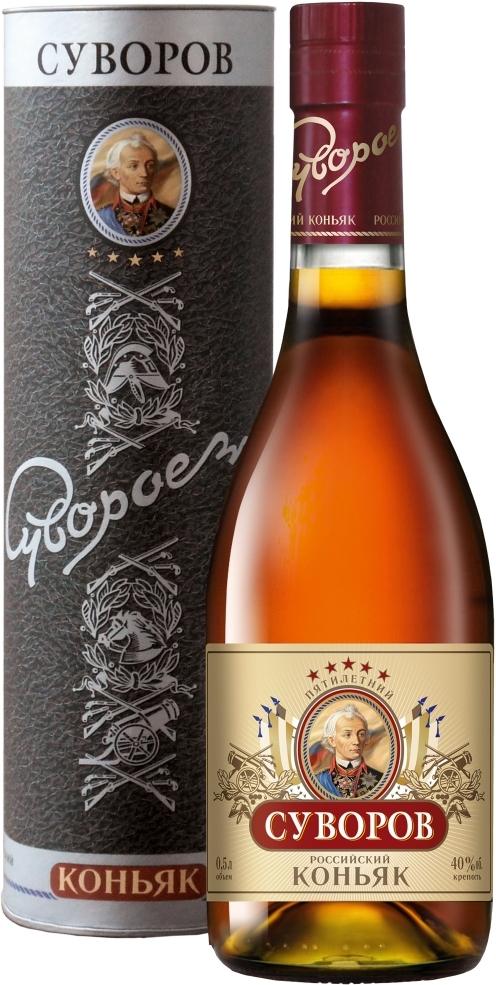 Коньяк "Suvorov" производится из виноградных спиртов, полученных из белых сортов винограда, выращенных в России. Коньяк получил свое имя в честь прославленного русского полководца, Суворова Александра Васильевича. Спирты, входящие в купаж, выдерживались в дубовых бочках не менее 5 лет. Напиток обладает янтарно-золотистым цветом, глубоким ароматом с нотами полевых цветов, сухофруктов и ванили, и полным, гармоничным вкусом со слегка маслянистой текстурой. Коньяк "Суворов" рекомендуется употреблять в качестве дижестива, в сочетании с кофе, черным чаем, сигарой, льдом, мороженым и в составе коктейлей.