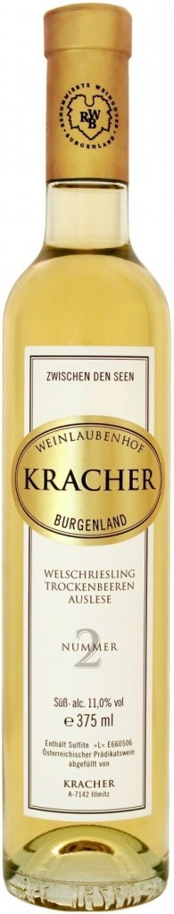TBA №2 Welschriesling "Zwischen den Seen" относится к разряду благородных сладких вин из винограда сорта Вельшрислинг. Оно выдерживается в емкостях из нержавеющей стали в течение 20 месяцев, приобретая за это время глубокий аромат и узнаваемый вкус. Название Trockenbeerenauslese (TBA) говорит о присвоении вину высшей классификационной категории. Трокенберенауслезе — очень сладкое вино из перезревших, заизюмленных ягод, тронутых благородной плесенью "Ботритис Цинерея". Вино составит отличную пару блинчикам с абрикосовым джемом, абрикосовому пирогу, очень зрелым сырам.