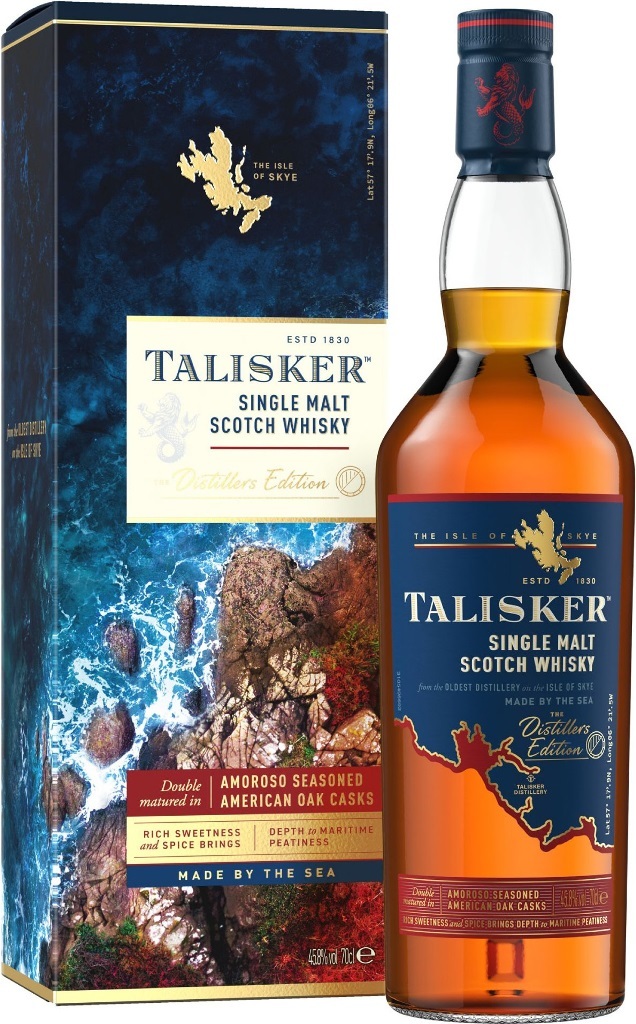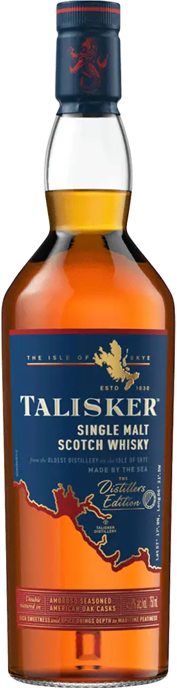 Виски Talisker, Distillers Edition предлагает насладиться практически идеальной гармонией горьковато-сладких оттенков, характерных для лучших сортов классического виски. В его вкусе мягкие торфяные нюансы переплетаются со сладостью и фруктовыми нотками, происходящими от выдержки в бочонках после сладкого хереса Олоросо (на сленге испанских виноделов — Amoroso). Производитель рекомендует подать виски Талискер "Дистиллерс Эдишн" с максимально вызревшим сыром Конте, который подчеркнет и усилит вкусовые качества этого благородного напитка.