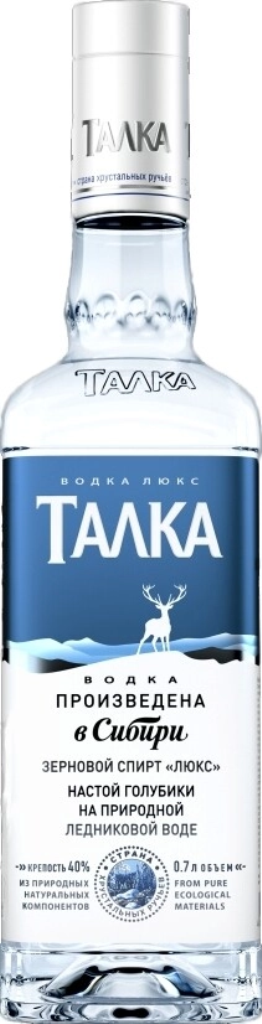 Талка, Люкс — как квинтэссенция щедрого сибирского края. В ней чувствуется все то, чем богата природа этого региона: кристальная чистота талой ледниковой воды, бодрящая свежесть морозного ясного утра и легкий привкус жемчужины сибирских лесов — ягоды голубики. Благодаря этой любимой и чтимой сибиряками ягоде, "Талка" Люкс обладает характерным терпковатым послевкусием.