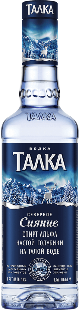 Талка, Северное Сияние — как квинтэссенция щедрого сибирского края. В ней чувствуется все то, чем богата природа этого региона: кристальная чистота талой ледниковой воды, бодрящая свежесть морозного ясного утра и легкий привкус жемчужины сибирских лесов — ягоды голубики. Благодаря этой любимой и чтимой сибиряками ягоде, "Талка" Северное Сияние обладает характерным терпковатым послевкусием.