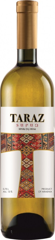Taraz, White Dry — свежее белое сухое вино из автохтонных сортов винограда Воскеат и Кангун, которое входит в традиционную коллекцию вин "Тараз". Виноград выращивается на виноградниках Арагацотна, на западе страны, в предгорьях Арагаца. Микроклимат здесь формируется под горным влиянием, но при этом сохраняет выраженные характеристики континентального климата. Для него характерны холодная зима и жаркое лето. Почвы виноградников — преимущественно вулканические, местами каменистые и карбонатные. Исключительные геоклиматические условия способствуют получению высококачественного урожая и максимальному раскрытию потенциала винограда.