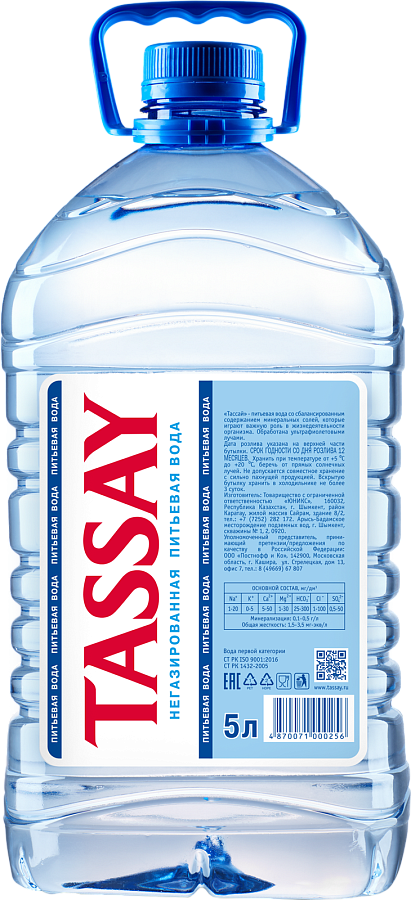 Вода Tassay, Still, PET, 5.0 л.