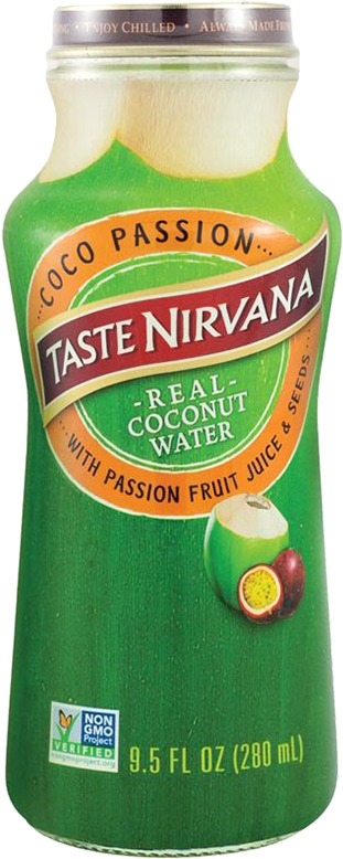 Тест Нирвана, 100% Натуральный сок кокоса с мякотью Маракуйи, в стекле