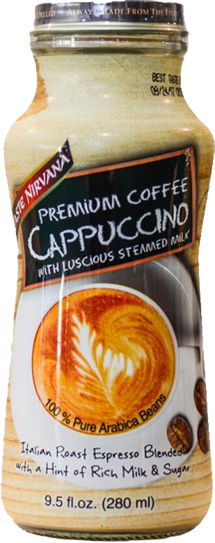 Taste Nirvana, Premium Coffee Cappuccino — кофе в стиле итальянского капучино, расфасованный в удобные жестяные банки. Напитки бренда "Taste Nirvana" популярны в юго-восточной Азии уже много лет. Этот свежесмолотый и сваренный традиционным методом кофе снискал признание среди поклонников тонизирующего напитка, поскольку содержит природный кофеин. Напитки "Taste Nirvana" рекомендуется пить охлажденными.