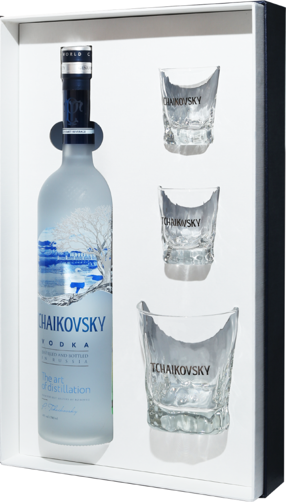Чайковский — классическая водка, обладающая тонким ароматом и гладким, свежим вкусом. При изготовлении водки используется спирт класса "Люкс" и чистая питьевая вода, которые подвергаются обработке обезжиренным сухим молоком для придания мягкости напитку, двойной фильтрации угольным фильтром и "отдых" для получения более тонких нот в органолептике. На этикетке изображено знаменитое произведение П.И. Чайковского "Лебединое озеро".
