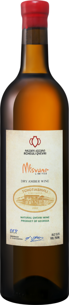 Tchotiashvili, Mtsvane "Rcheuli Qvevri" — изысканное сухое вино, изготовленное из винограда сорта Мцване, который выращивается на виноградниках компании. Сбор урожая осуществляется исключительно вручную, после чего ягоды тщательно сортируются. Винификация проходит при строго контролируемой температуре в уникальном глиняном сосуде — Квеври. Глина, используемая для изготовления Квеври, богата золотом, другими основными металлами и известью. Квеври поддерживает постоянную температуру 13-15 °С, необходимую для брожения вина. В сосуде естественно и один за другим протекают те химические процессы, которые в условиях винодельческого завода выполняются с использованием специального оборудования и добавок. В процессе брожения вино размешивается 4-5 раз в день. В конце брожения виноградные косточки, прессованные шкурки и гроздья винограда оседают на дне Квеври. Вино выдерживается как в Квеври, так и в старых бочках из французского дуба. Вино обладает всеми свойствами, характерными для производимого в Квеври: высокая пищевая ценность, лечебные свойства — вино укрепляет иммунитет. Вино богато фенольными соединениями и витаминами разных групп, отличается высоким содержанием витамина "РР", который питает сердечно-сосудистую систему.