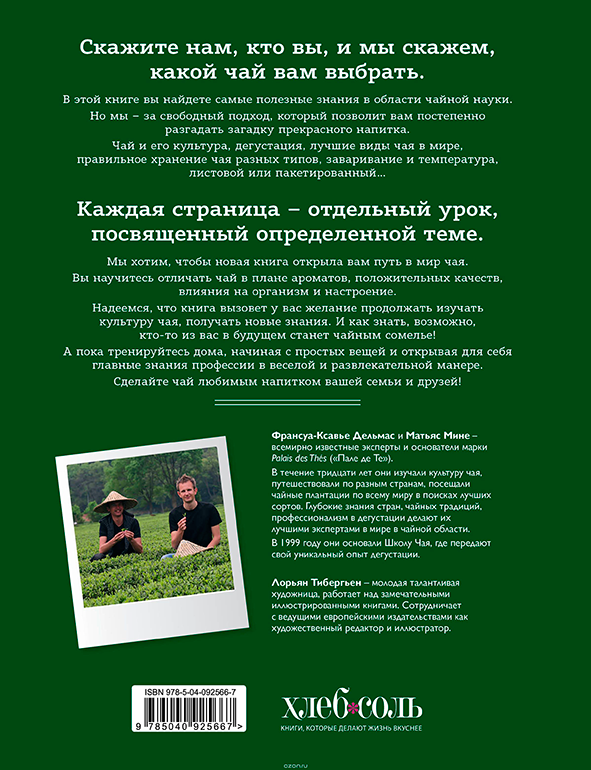Авторы много путешествовали по миру и знакомят нас с традициями стран–производителей чая. Как делают черный и зеленый чай, улун, белый, темный, желтый... Что такое купаж и гран крю, каковы секреты жасминового чая, в каких условиях произрастают чайные кусты в различных регионах и как собирают урожай – весь свой значимый и полезный опыт авторы передают читателям.