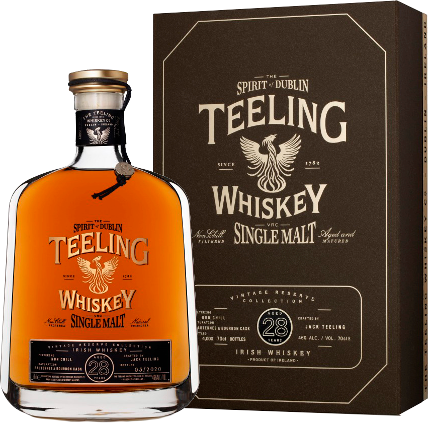 Teeling, Single Malt Irish Whiskey 28 Years Old — односолодовый ирландский виски, который был дистиллирован в 1991 году и выдержан в течение 28-х лет: сначала в бочках из-под бурбона, а затем — в бочках из-под вина Сотерн. Виски разлит по бутылкам без холодной фильтрации. Только в октябре 2019 года виски был разлит по бутылкам. Выпуск этого релиза составляет всего 4000 бутылок.