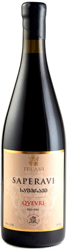 Сбалансированное красное сухое вино "Telavi" Saperavi Qvevri изготовлено из винограда сорта Саперави. Винификация проводится в глиняных кувшинах Квеври, зарытых в землю. Богатый ягодный аромат и бархатистый вкус вина делают его незаменимым спутником для большого количества мясных блюд. Вино раскроет всю полноту своего букета в паре с блюдами из красного мяса, домашней птицы или дичи. Попробуйте насладиться вином в компании нарезки из колбас и сыров, чтобы открыть новые, неизведанные грани вкуса. Вино рекомендовано слегка охладить перед употреблением.