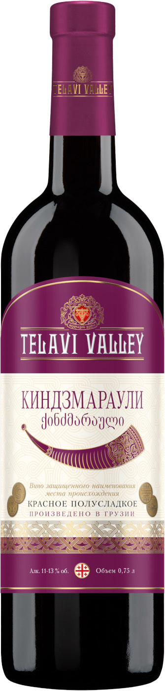 Телави Велли, Киндзмараули — красное полусладкое вино из Киндзмараульской микрозоны. Оно на 100% состоит из винограда Саперави, выращенного у берегов реки Алазани. Собранные вручную грозди освобождаются от гребней и деликатно дробятся. Ферментация проходит при температуре 23-28 °С, высвобождая аромат и цвет из кожуры ягод. Чтобы получить максимально насыщенное вино, регулярно осуществляются процедуры ремонтажа и делестажа. Брожение останавливается путем резкого охлаждения, что обеспечивает будущему вину комбинацию свежести и сладости. Выдерживается вино в стальных цистернах при температуре около 0 °С.