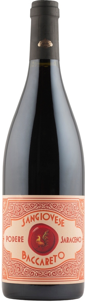 Tenuta S.Lucia, Baccareto Podere Saraceno, Sangiovese, Rubicone — красное сухое вино, изготовленное из винограда сорта Санджовезе, который созревает на органическом винограднике "Баккарето", расположенном в районе Гальгано (коммуна Меркато Сарачено) в провинции Форли-Чезеназоне в зоне Рубиконе на высоте около 250 метров над уровнем моря на глинисто-известковых почвах. Климат здесь очень благоприятный благодаря постоянному обмену потоками воздуха с Адриатики и Альп. Площадь виноградника — 5 гектаров. Плотность посадки — 6300 лоз на гектар.