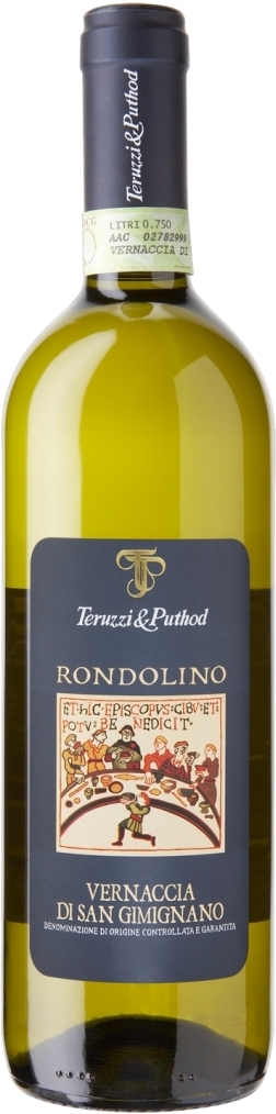 Rondolino, Vernaccia di San Gimignano — хорошо сбалансированное и освежающее белое сухое вино, изготовленное из отборного винограда сорта Верначча, который выращивается на виноградниках компании в Сан-Джиминьяно, в самом сердце Тосканы. Почвы на виноградниках в основном представлены желтыми песчаниками и глиноземами. Виноградники расположены на высоте около 350 метров над уровнем моря. Местный континентальный климат и влияние Тирренского моря создают идеальные условия для культивирования Верначчи. Купаж может быть дополнен незначительным количеством (до 5%) других белых сортов винограда для достижения идеального баланса и придания сложности вкусоароматической палитре. Средний возраст виноградных лоз достигает 15 лет. Урожай собирается по достижении ягодами оптимальной спелости, как правило, в середине сентября. На винодельне виноград подвергается холодной мацерации в течение ночи и мягкому прессованию на следующий день после сбора урожая. Полученное сусло отстаивается при низких температурах, после чего подвергается ферментации при контролируемой температуре 16°C с последующей выдержкой на осадке в стальных чанах.