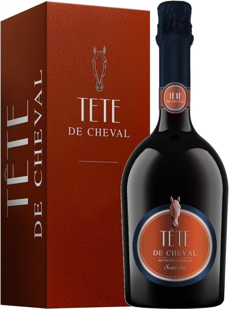 Tete de Cheval, Semi-Dry — элегантное игристое вино с тонким ароматом и свежим, гармоничным вкусом с хорошим балансом и приятным длительным послевкусием. Вино производится из отборного винограда сортов Рислинг Рейнский, Шардоне и Пино Серый. Это игристое вино великолепно в качестве аперитива, а также как сопровождение морепродуктов, рыбы, птицы, мягких сыров, фруктов и десертов.