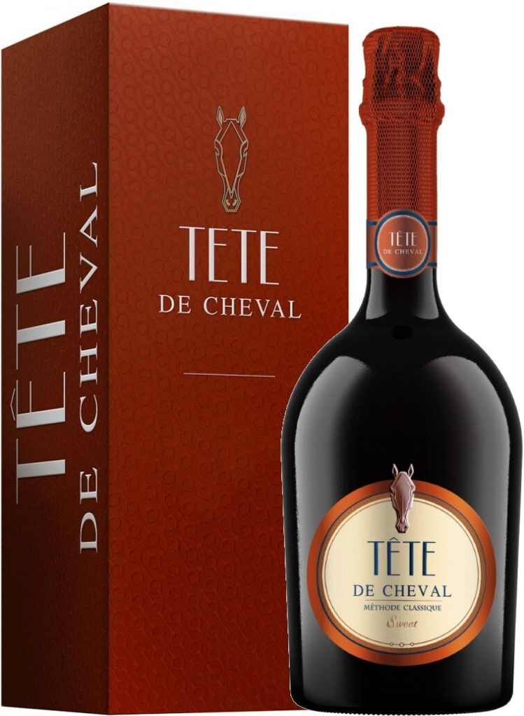 Tete de Cheval, Sweet — по достоинству оценят представительницы слабой половины человечества. Легкие пузырьки, поднимающиеся со дна бокала, прекрасно дополняют мягкий, нежный, фруктовый вкус игристого вина. Для его изготовления используется отборный виноград сортов Рислинг Рейнский, Шардоне и Пино Серый. "Tete de Cheval" Sweet прекрасно сочетается с легкими блюдами, салатами и закусками, а также фруктами, сырами и десертами.