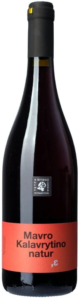 Tetramythos, Mavro Kalavrytino Natur — это органическое вино производится с 36-летних лоз, расположившихся на севере региона Aigialeia. После ферментации вино выдерживается в дубовых танках объемом 5000 литров в течение 5 месяцев. Перед бутилированием вино не осветляется и не фильтруется. Потенциал - более 10 лет.