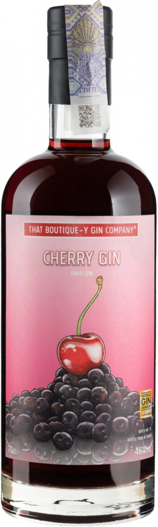 That Boutique-Y Gin Company, "Cherry" — оригинальный джин, созданный на основе классического джина с добавлением кисло-сладкой вишни Мараскино и щедрой щепотки специй. Джин рекомендуется подавать на дижестив и использовать в качестве ингредиента для коктейлей.