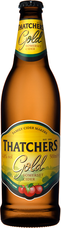 Thatchers, Gold — полусухой яблочный сидр, полный, гладкий вкус которого также хорош, как и его блестящий золотой цвет. Для создания этого классического сидра, рецептура которого оттачивалась более ста лет, производитель отбирает лучшие яблоки из собственных садов, а при изготовлении использует как традиционный подход, так и современные методы. Отсутствие в составе сидра глютена и молочных кислот делает возможным его употребление вегетарианцами. Сидр рекомендуется пить охлажденным или с кубиком льда.
