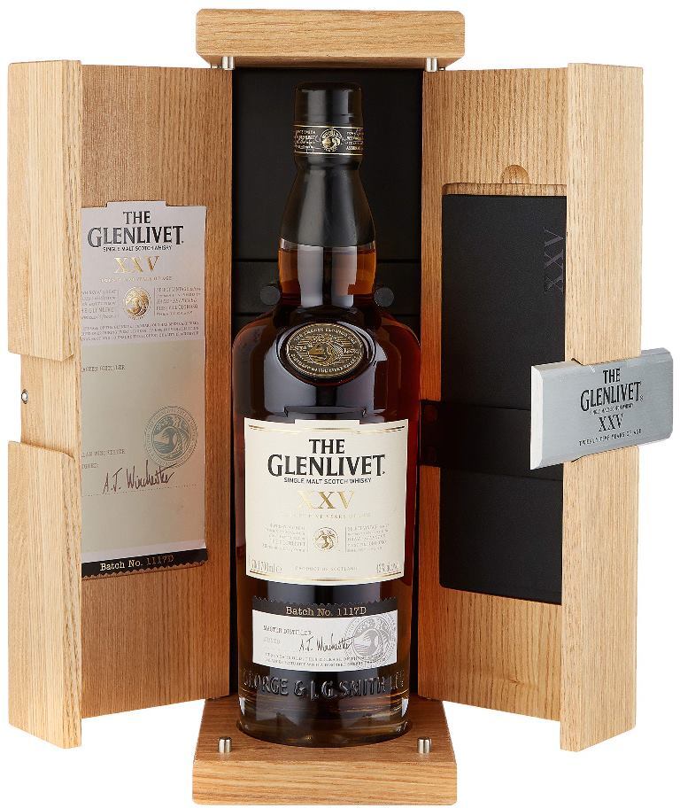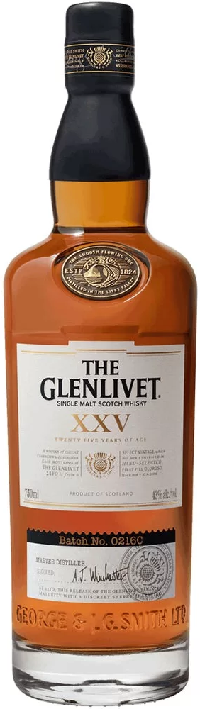 The Glenlivet, 25 Years Old — элегантный, шелковистый, благородный, супер-премиальный виски, который производится в очень ограниченном количестве. Завершающая стадия выдержки виски в течение несольких лет производится во вручную отобранных бочках из-под хереса. Дубовые баррики, в которых ранее выдерживался сухой херес Олоросо, обогащают виски нотами поджаренных лесных орехов и коричневых сладких специй, а также придают вкусу насыщенность и экспрессивность. В процессе старения каждая бочка находится под особым контролем на предмет соответствия требуемым изысканным хересным оттенкам аромата, благодаря которым "Гленливет" 25-летний обрел мировое признание.