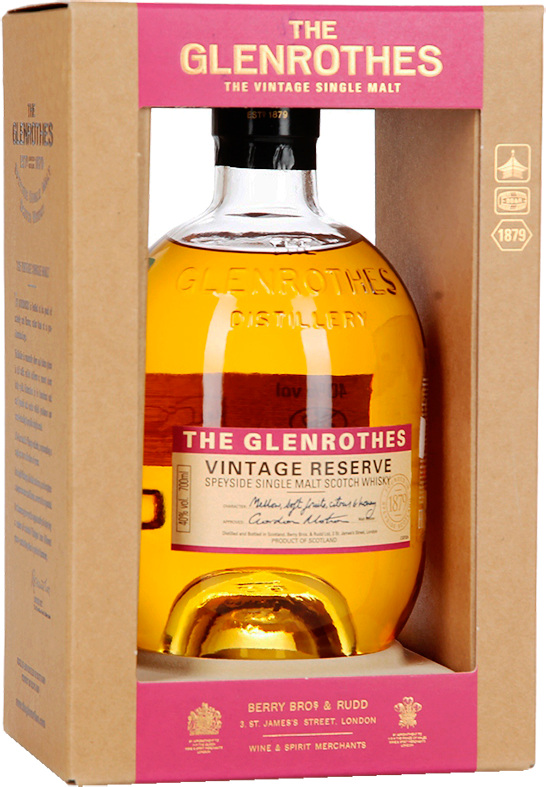 Glenrothes, Vintage Reserve — односолодовый шотландский виски, в полной мере выражающий философию Гленротс. Виски состоит из 10 лучших винтажных спиртов, возраст которых достигает 30 лет — 1989, 1992, 1997, 1998, 2000, 2001, 2004, 2005, 2006, 2007. Напиток демонстрирует мягкий, элегантный аромат и шелковистый, пьянящий вкус со сливочной текстурой и фруктово-медовыми оттенками.